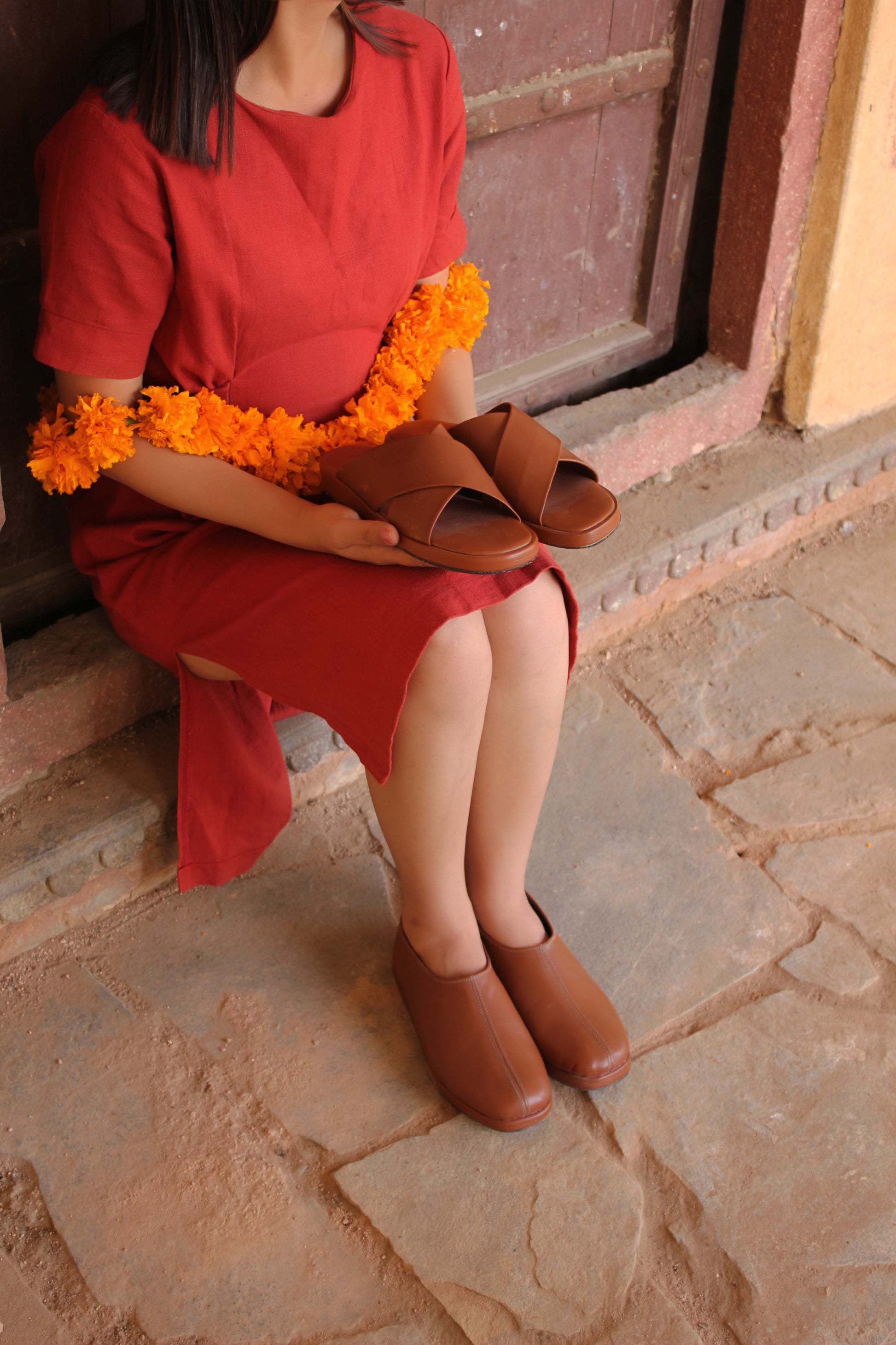A sock shoe as they are in form Genuine leather with a bit more structure. Made with and tyre waste for soles which are much more durable with a grip than your regular shoes